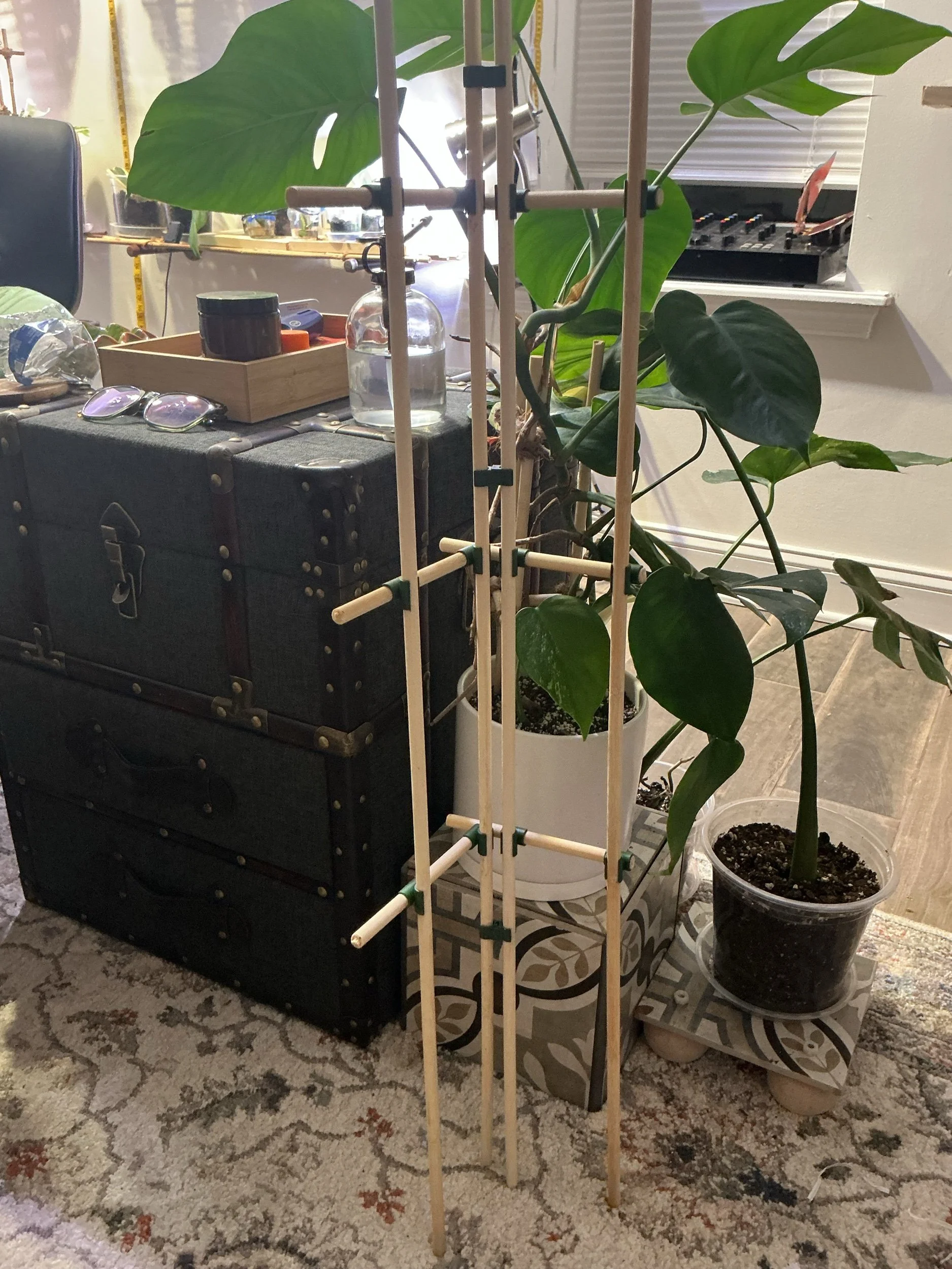 Say no more to green plastic trellises, green bamboo stakes or those ugly moss poles. These are made from 100% genuine, planed bamboo scaffolds with waterproof tips to prevent mold and rot. They are completely customizable to fit any sized pot from 3” and up. These plant scaffolds are meant to help your vine-type or regular house plants stretch for the skies, protect from the elements, track your plants growth, and ALL without sacrificing looks and style. Its an open design with hinges that’ll allow you to chose your angle, you can choose your height, and you can remove each unit without hurting the plant to simply reuse elsewhere.